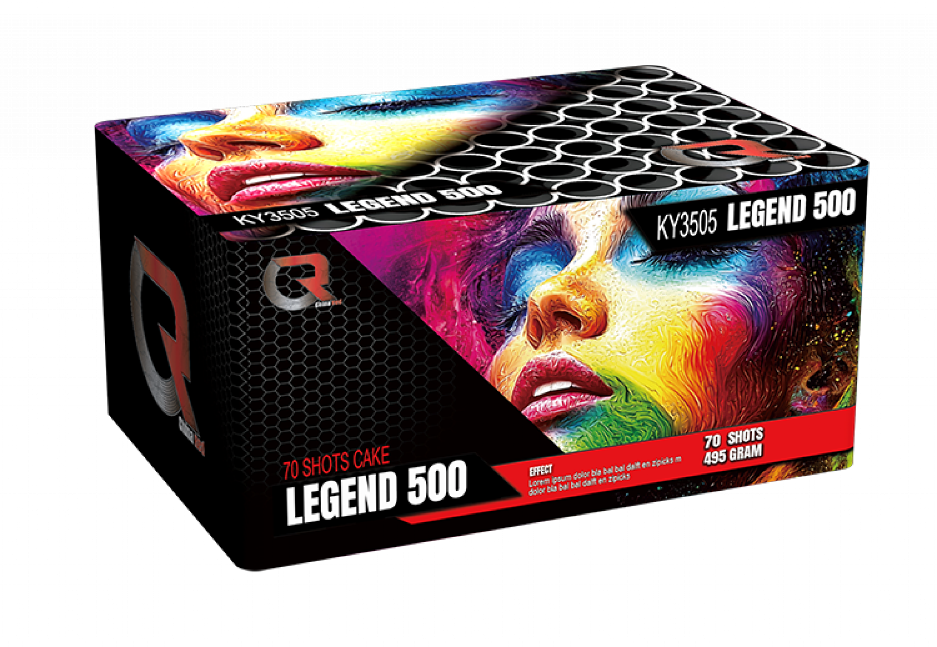 Nieuw in het assortiment, maar nu al legendarisch. LEGEND 500 brengt grootse show in één compacte box. Klaar om jouw avond onvergetelijk te maken!